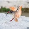 圣鹮头、颈黑色,身体白色,初级和次级飞羽尖端黑色。喙长且厚、黑色下弯,跗蹠与趾黑色。下背部有大量黑色纱状装饰羽,翼下裸露皮肤红色,体侧有时带黄褐色。亚成鸟的头、颈有羽毛,斑驳黑色带有白色纵纹,…全部>>