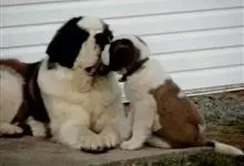 圣伯纳犬,别名巴里汉德,属于大型工作犬,肩高约65~90厘米,体重约50~90千克。圣伯纳犬身体强壮,被毛红褐色和白色相间,头圆而宽大。颈部强壮,胸宽深,背直。前肢长直,腕关节略前倾,后肢腿骨粗壮,…全部>>