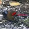 丽色噪鹛是红翅噪鹛的指名亚种。中型鸟类,体长23-28厘米。头顶灰橄榄褐色具粗著的黑色纵纹,头侧、颏、喉黑色,耳羽灰白色具黑色纵纹。背和胸、腹棕褐色,两翅具一大的鲜红色斑,尾亦为鲜红色。特征极明显,…全部>>