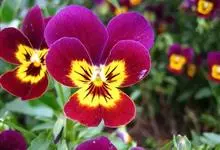 角堇:为堇菜科堇菜属多年生草本植物。株高10-30厘米 ,宽幅20-30厘米。具根状茎。茎较短而直立,分枝能力强。花两性,两侧对称,花梗腋生,花瓣5,花径 2.5-4.0厘米。花色丰富,…全部>>