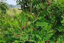紫穗槐是豆科紫穗槐属落叶灌木植物。紫穗槐小枝幼时密被短柔毛,后渐变无毛;小叶卵形或椭圆形;穗状花序顶生或生于枝条上部叶腋,花冠紫色;荚果长圆形,成熟时棕褐色;花果期5-10月。…全部>>