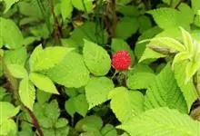 掌叶覆盆子是蔷薇科悬钩子属植物,藤状灌木,高1.5-3米;枝细,具皮刺,无毛。单叶,近圆形,直径4-9厘米,两面仅沿叶脉有柔毛或几无毛,基部心形。单花腋生,…全部>>