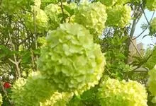 绣球荚蒾,五福花科荚蒾属落叶灌木,高可达3米,树冠球形;幼枝有垢屑状星状毛,老枝粗壮,具皮孔,枝条开展;冬芽裸露;叶对生,卵形至卵状椭圆形;大型聚伞花序呈球状,形如绣球,几全由不孕花组成;花冠白色,…全部>>