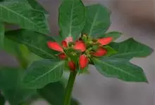 猩猩草:常绿或半常绿灌木,盆栽时株高0.5米-2米,在亚热带地区可长到6米以上。茎直立而光滑,单叶互生,卵状椭圆形至阔披针形,具不规则的深缺刻。长10-15厘米。花小,有蜜腺,排列成密集的伞房花序。…全部>>