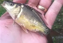 镜鲤是鲤形目鲤科鲤属鱼类。体形较粗壮,侧扁,头后背部隆起;头较小,眼较大;有颌须2对;鳃耙短小,呈三角形适中排列;尾鳍叉形;体表鳞片较大,沿边缘排列,背鳍前端至头部有一行完整的鳞片,…全部>>