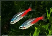 红绿灯鱼(红绿魮脂鲤、红绿灯鱼)鲤形目 > 脂鲤科 > 霓虹脂鲤属 > 红绿灯鱼