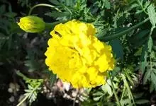 万寿菊是菊科万寿菊属一年生草本植物,别名孔雀菊、缎子花、臭菊花、西番菊、红黄草、小万寿菊、臭芙蓉、孔雀草。万寿菊茎近基部分枝。叶羽状分裂,长5-10厘米,宽4-8厘米,裂片长椭圆形或披针形,具锐齿,…全部>>