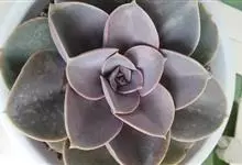 紫珍珠是景天科石莲花属的多年生肉质草本植物。植株中小型;叶片肉质,匙形,呈莲座状紧密排列;叶片粉紫色,叶缘呈粉白色,光照充足时颜色亮丽,不足时叶色会呈现深绿色或灰绿色,叶面光滑,被轻微白粉,…全部>>