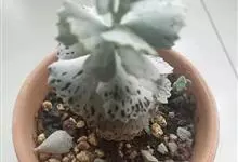 褐斑伽蓝是景天科伽蓝菜属的多年生多肉类植物,茎直立,多分枝,叶生于枝上,肉质叶片匙形,上面密被白色绒毛,下部全缘,叶缘上部有缺刻,缺刻处有深褐或棕色斑块。褐斑伽蓝原产非洲的马达加斯加岛。…全部>>
