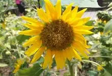 向日葵:是桔梗目、菊科、向日葵属的植物。因花序随太阳转动而得名。是一年生高大草本植物。茎粗壮,高1-3米,不分枝或有时上部分枝,被白色粗硬毛。叶互生,卵状心形或卵形,顶端急尖或渐尖,基生3出脉,…全部>>