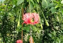 吊灯扶桑 Hook. f.)为锦葵科木槿属的常绿灌木。高达3米;小枝常下垂;叶椭圆形或长圆形,先端尖或短渐尖,基部楔形;花梗细,无毛或具纤毛,中部具节;蒴果长圆柱形;花期全年。因似灯笼高挂,…全部>>