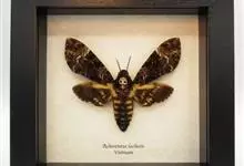 鬼脸天蛾,是鳞翅目天蛾科面形天蛾属动物。成虫翅展100~125毫米,体黑褐色;胸背有骷髅形斑纹;卵圆球形,直径约2毫米,淡黄绿色,表面光滑;老熟幼虫体长70~90毫米,蛹体长约56毫米;前翅为褐色,…全部>>