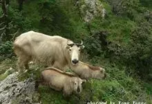 羚牛,偶蹄目牛科羚牛属哺乳动物,俗称扭角羚、野山牛、盘羊。其体形粗壮。尾短。吻鼻部隆起且裸露。前额隆起,毛短而蓬松。角基粗,由头顶长出后先向上升起,又突然翻转,靠近头部,复向外伸,然后又向后弯转,…全部>>