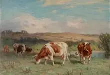 西门塔尔牛是偶蹄目牛科牛属哺乳动物。 体躯长,呈圆筒状,肌肉丰满;头较长,面宽,颈长中等,角较细而向外上方弯曲,尖端稍向上;前躯较后躯发育好,胸深,尻宽平,四肢结实,大腿肌肉发达,乳房发育好。…全部>>
