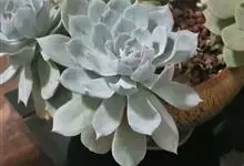 蓝石莲是景天科、拟石莲花属的多肉植物。茎部粗壮,成熟植株茎部木质化。叶片莲座型密集排列,株径不会很大,叶片相对较薄,常年绿色,表面布有白色粉末,中部凹陷,呈倒水滴状。叶尖较尖,叶缘光滑无褶皱,…全部>>