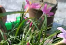 小韭兰学名韭菜莲又名风雨花、菖蒲莲、红玉帘和旱水仙,多年生草本,鳞茎卵球形,基生叶常数枚簇生,线形,扁平,花单生于花茎顶端,下有佛焰苞状总苞,花玫瑰红色或粉红色,蒴果近球形,种子黑色,花期夏秋。韭莲…全部>>