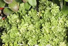 爱染锦,别名黄笠姬锦、墨染,景天科莲花掌属多肉植物,矮小灌木状植株。原产地位于大西洋诸岛、北非和地中海沿岸,叶美,可观赏,…全部>>