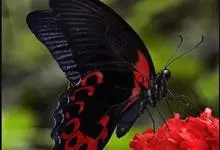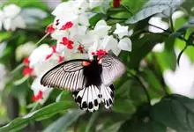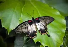 玉斑凤蝶Papilio helenus 别名白纹凤蝶,是凤蝶科凤蝶属美凤蝶亚属大型种类。雌雄同型;体翅皆黑色,后翅正面中室外有3个并列的白色斑,亚外缘有1列模糊的新月形红色斑,…全部>>