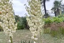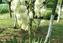 丝兰是天门冬科丝兰属植物。茎短或无茎;圆锥花序烛台状,花朵杯形,下垂,白色;叶基部呈剑形放射状,被白粉,革质;花期8—10月。丝兰原产于北美,在中国长江流域一带和华北地区均有栽培,长江以南地区也有分布。…全部>>