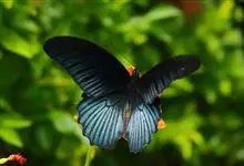 美凤蝶又名多型蓝凤蝶、大凤蝶,是鳞目凤蝶科凤蝶属动物。美凤蝶雄蝶无尾突,翅黑色,正面各翅室中部有深色条纹,分布蓝色鳞片,反面前后翅基部有红斑,后翅臀角有环状红斑。雌蝶具多型,前翅浅灰色,外缘和翅脉黑色,…全部>>