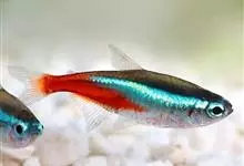 霓虹灯鱼(霓虹灯鱼、红莲灯鱼)鲤形目 > 脂鲤科 > 脂鲤科属 > 霓虹灯鱼