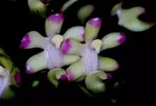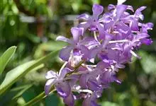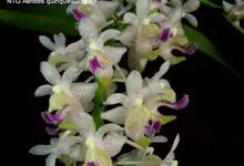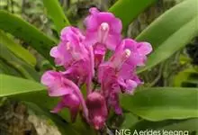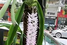 指甲兰是兰科指甲兰属植物。其茎粗壮;叶带状;总状花序疏生数朵花;萼片和花瓣淡白色,上部具紫红色;唇瓣侧裂片镰状长圆形;中裂片近宽卵形,前半部紫色,后半部白色带紫色斑点和条纹,先端凹缺,…全部>>