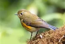 红胁蓝尾鸲俗名:蓝点冈子、蓝尾巴根子、蓝尾杰、蓝尾欧鸲。体型略小而喉白的鸲。特征为橘黄色两胁与白色腹部及臀成对比。雄鸟上体蓝色,眉纹白;亚成鸟及雌鸟褐色,尾蓝。…全部>>