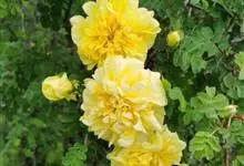 黄刺玫是蔷薇科蔷薇属的直立灌木。高2-3米;枝粗壮,密集;小叶片呈宽卵形或近圆形,边缘有圆钝锯齿,上面无毛;叶轴、叶柄有稀疏柔毛和小皮刺;花单生于叶腋,重瓣或半重瓣,呈黄色;花梗长1-1.5厘米,无毛,…全部>>