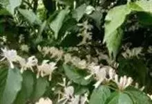 山银花在华南地区野外山林生长。木质藤本,长2~5m。树皮黄褐色渐次变为白色,嫩时有短柔毛。叶对生,卵圆形至椭圆形,长4~8cm,宽3.5~5cm,上面绿色,主脉上有短疏毛,下面带灰白色,密生白色短柔…全部>>