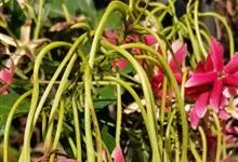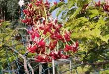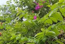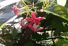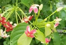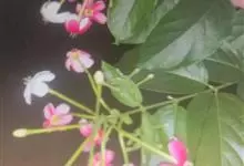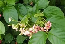 使君子 Jongkind)是使君子科、使君子属攀援灌木,叶对生,椭圆形,两面均被灰白色柔毛。穗状花序,倒挂下垂。花期夏秋。果有五棱,熟时黑色,种子白色。分布于印度、缅甸、菲律宾和中国。喜温润,深根性,…全部>>