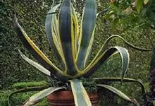 金边龙舌兰是天门冬科龙舌兰属多年生常绿草本植物。叶丛生边缘有黄白色条带镶边,有紫褐色刺状锯齿;圆锥花序黄绿色,花药丁字形着生;蒴果长椭圆形;种子扁平黑色。10年开花,结实后即枯死。…全部>>