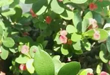 虎刺梅:别称铁海棠,是蔓生灌木植物。茎多分枝,长60-100厘米,直径5-10毫米,具纵棱,密生硬而尖的锥状刺,刺长1-1.5厘米,直径0.5-1.0 毫米,常呈3-5列排列于棱脊上,呈旋转。叶互生…全部>>