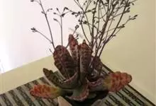 伽蓝菜是景天科伽蓝菜属植物。多年生草本,高20-100厘米。叶对生,中部叶羽状深裂,全长8-15厘米,裂片线形或线状披针形。聚伞花序排列圆锥状,长10-30厘米;苞片线形。花期3月。…全部>>