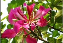 红花羊蹄甲,为豆科羊蹄甲属植物,别名艳紫荆、洋紫荆。半落叶乔木,高达了~10 m,叶草质,近圆形或阔心形,长8~13cm顶端开裂至全叶长1/4~13,裂片顶端圆。总状花序顶生或腋生,花冠紫红色,…全部>>