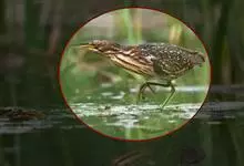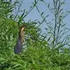 紫背苇鳽是鹭科、苇鳽属动物,为涉禽,体长约33厘米。头顶黑色,后头至尾上覆羽暗栗褐色;翅上覆羽橄榄黄色;下体浅棕黄色。多生活于水库和山脚边的稻田、芦苇丛、滩涂及沼泽草地,在西藏见于海拔2300米的农田,…全部>>