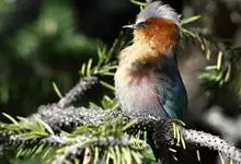 凤头雀莺:小型鸟类。体长9-10厘米,雄鸟呈毛茸茸的紫色和绛紫色,顶冠淡紫灰色,额及凤头白色,尾全蓝。雌鸟喉及上胸白,至臀部渐变成淡紫色,耳羽灰,…全部>>