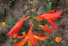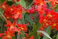 雄黄兰是鸢尾科雄黄兰属多年生草本植物。雄黄兰具扁球径,叶多基生,剑形;花茎由多花给成疏散的穗状花序,花冠漏斗状,深橙红色;蒴果。 花期7-8月,果期8-10月 。雄黄兰因橘红色的花与雄黄颜色相似而得名。…全部>>