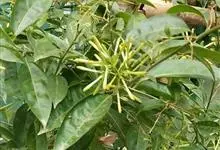 夜香树是茄科、夜香树属直立或近攀援状灌木。枝条细长而下垂。叶有短柄,叶片矩圆状卵形或矩圆状披针形,全缘,顶端渐尖,基部近圆形或宽楔形,两面秃净而发亮,有6-7对侧脉。伞房式聚伞花序,腋生或顶生,…全部>>