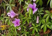 五爪金龙 Sweet),旋花科番薯属多年生缠绕草本植物。茎细长,有细棱;叶片为掌状;花冠紫红色、紫色或淡红色、偶有白色,漏斗状;蒴果近球形。花期5~12月。五爪金龙的叶子类似掌状,有5至7个裂痕,…全部>>