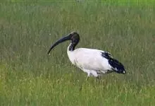 圣鹮头、颈黑色,身体白色,初级和次级飞羽尖端黑色。喙长且厚、黑色下弯,跗蹠与趾黑色。下背部有大量黑色纱状装饰羽,翼下裸露皮肤红色,体侧有时带黄褐色。亚成鸟的头、颈有羽毛,斑驳黑色带有白色纵纹,…全部>>