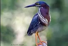 绿鹭:是鹳形目鹭科绿鹭属鸟类。体型小,头顶黑,枕冠亦黑色,上体蝉灰绿色,下体两侧银灰色;前额至后枕及冠羽墨绿色,眼后有一白斑,颊纹黑色;颚纹白色,后颈、颈侧和体侧烟灰色;背部披灰绿色矛状长羽,…全部>>