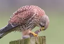 红隼:是隼科、隼属的小型猛禽之一。体重173-335克,体长305-360毫米。翅狭长而尖,尾亦较长,外形和共同爪隼非常相似。雄鸟头蓝灰色,背和翅上覆羽砖红色,具三角形黑斑;腰、尾上覆羽和尾羽蓝灰色,…全部>>