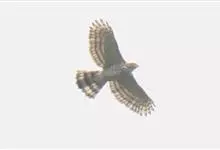 褐耳鹰的体形比苍鹰要小得多,为小型猛禽,体长为31-44厘米,体重217-325克。上体灰色,下体具赤褐色横斑。第6枚初级飞羽外羽片无缺刻,次外侧的4对尾羽具5道黑褐色横斑。眼先具白色短羽。…全部>>