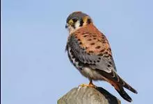 红隼:是隼科、隼属的小型猛禽之一。体重173-335克,体长305-360毫米。翅狭长而尖,尾亦较长,外形和共同爪隼非常相似。雄鸟头蓝灰色,背和翅上覆羽砖红色,具三角形黑斑;腰、尾上覆羽和尾羽蓝灰色,…全部>>