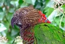 鹰头鹦鹉:鹰头鹦鹉体长35厘米,体重190-277克。额头和顶冠具柔和的白色,眼先深褐色,枕部和头部两侧有棕色羽毛,并具有柔软的白色条纹, 后颈有长长的暗红色羽毛并镶有蓝边,有2个亚种,是典型的攀禽,…全部>>