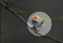 黑脸鹟莺:体长10厘米,是有特色的体小而多彩的莺鸟。粗眉纹,颏、喉及尾下覆羽黄色,脸罩黑,头顶及颈背灰色,上体绿,无翼纹,腹白。虹膜褐色;上嘴色深,下嘴肉色;脚偏绿色。…全部>>