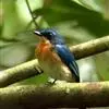 山蓝仙鹟:小型鸟类,体长13-15厘米。雄鸟额基和眼先黑色,颏橙棕色,仅颏尖为蓝黑色,喉、胸、上腹和两胁亦为橙棕色,下体白色范围较小,仅局限于下腹和尾下覆羽。雌鸟上体少黄色,颏、喉、胸概为锈红色,…全部>>