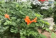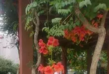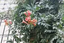 凌霄 Schum.),别名上树龙、五爪龙、九龙下海等,为紫葳科凌霄属的攀援藤本植物。其茎木质,以气生根攀附于它物之上。叶对生,为奇数羽状复叶;小叶卵形至卵状披针形,边缘有粗锯齿;顶生疏散的短圆锥花序,…全部>>