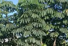 昆士兰伞木,吕松鹅掌柴 ,称昆石兰遮树,澳洲鸭脚木、方式叶鹅掌柴、伞树、大叶伞。叶片阔大,柔软下垂,形似伞状,株形优雅轻盈,易于管理,适于客厅的墙隅与沙发旁边置放,是室内理想的观叶植物。但目前多由…全部>>