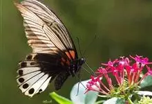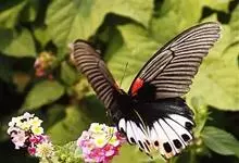 美凤蝶又名多型蓝凤蝶、大凤蝶,是鳞目凤蝶科凤蝶属动物。美凤蝶雄蝶无尾突,翅黑色,正面各翅室中部有深色条纹,分布蓝色鳞片,反面前后翅基部有红斑,后翅臀角有环状红斑。雌蝶具多型,前翅浅灰色,外缘和翅脉黑色,…全部>>